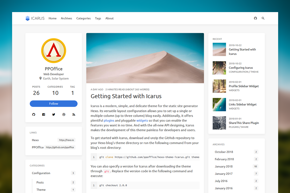 https://ppoffice.github.io/hexo-theme-icarus/