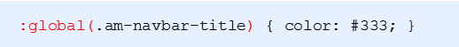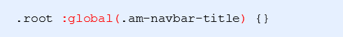- 对于组件库中已经有的全局样式,需要使用:global() 来指定,例如:我们在修改 NavBar 里面文字颜色的时候,用到了一个类名叫: am-navbar-title 这个类名不是我们设置的,而是组件库中定义的,所以对于这一类,我们需要这样去设置: